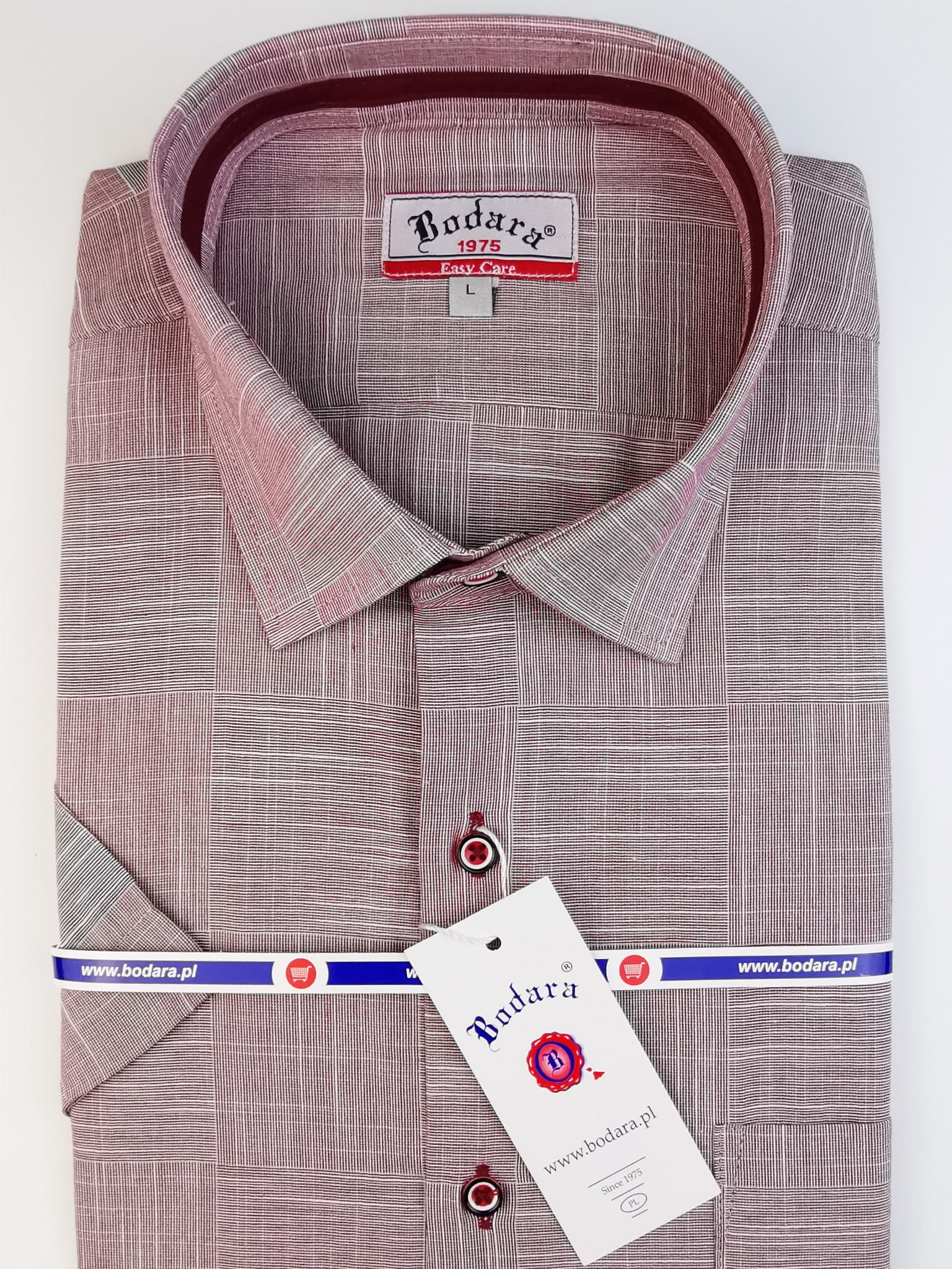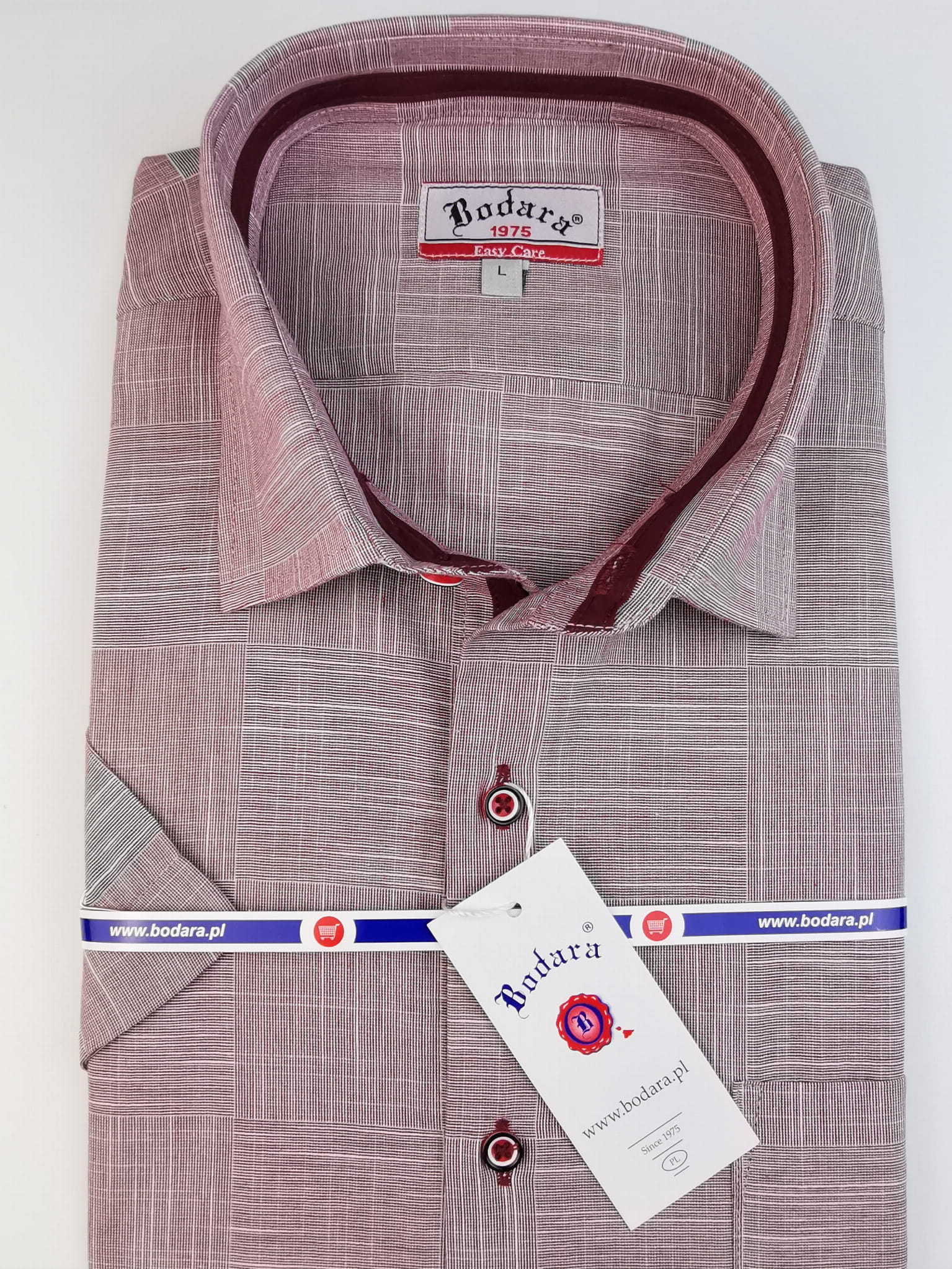 Bodara koszula a'la lniana ciemno-różowa krótki rękaw SLIM-FIT
