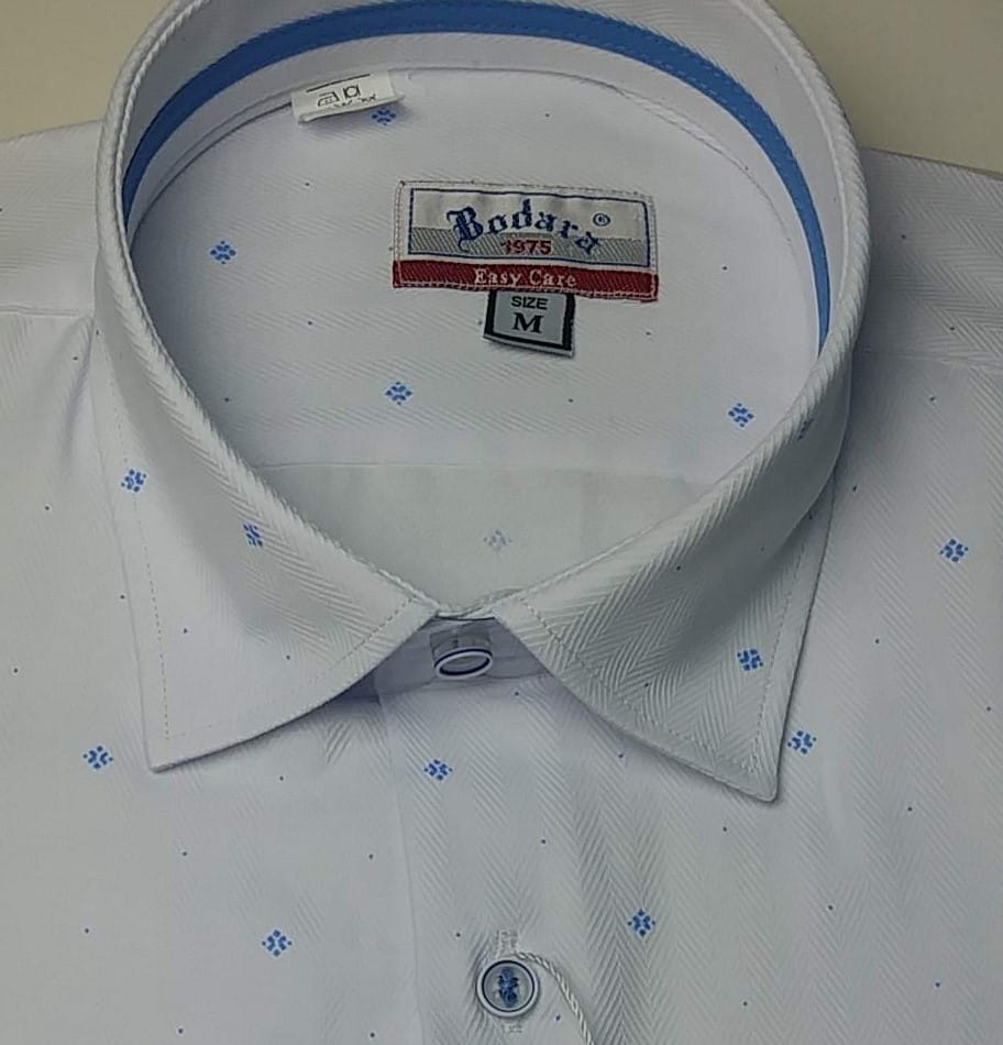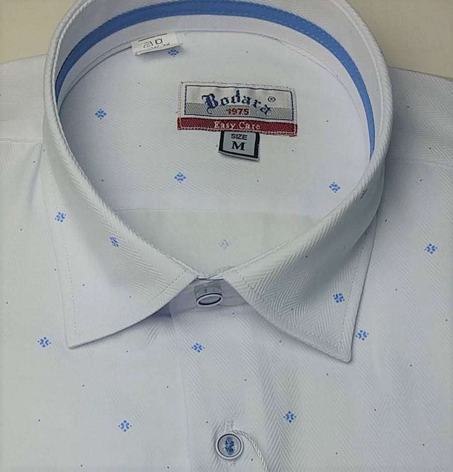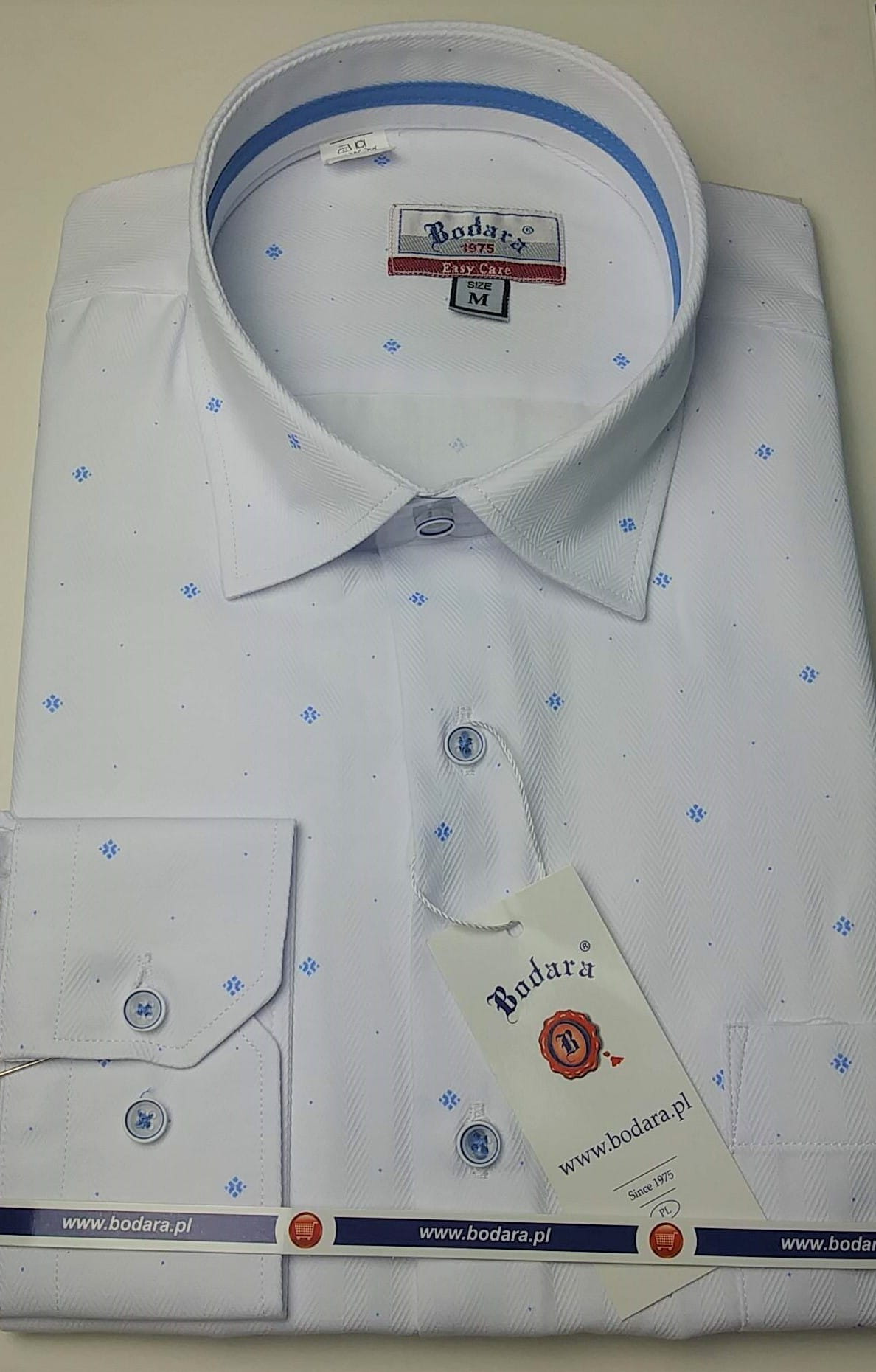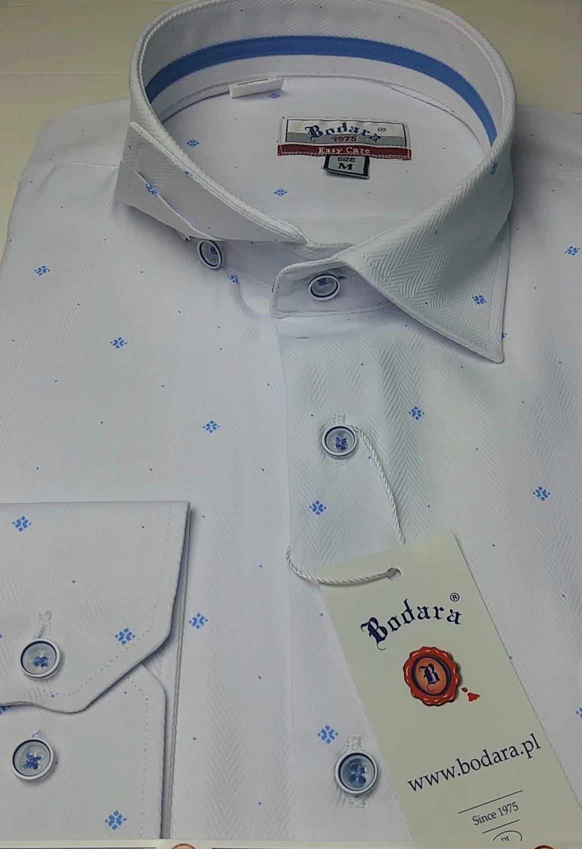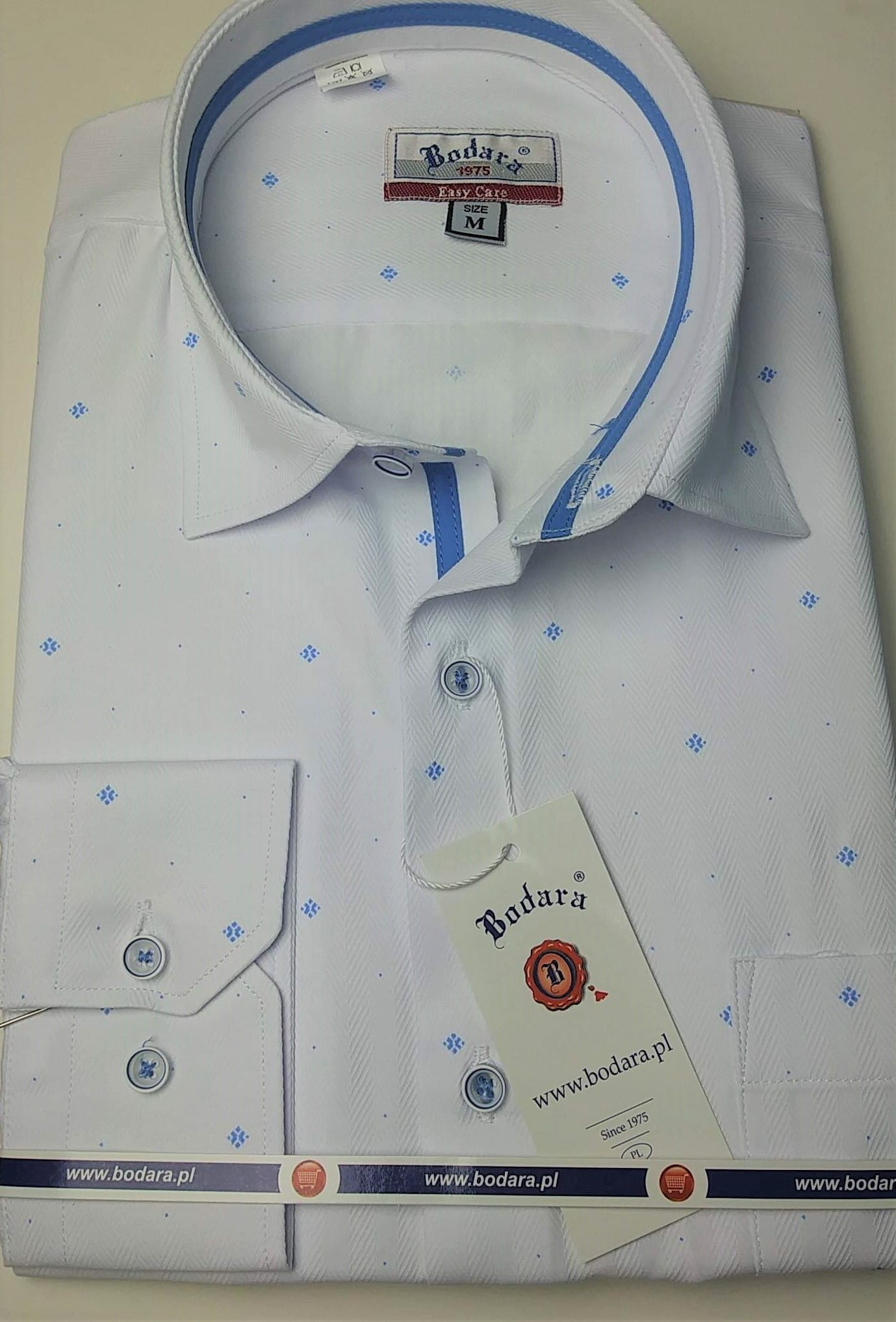 Bodara koszula biała w błękitny wzorek SLIM-FIT długi rękaw