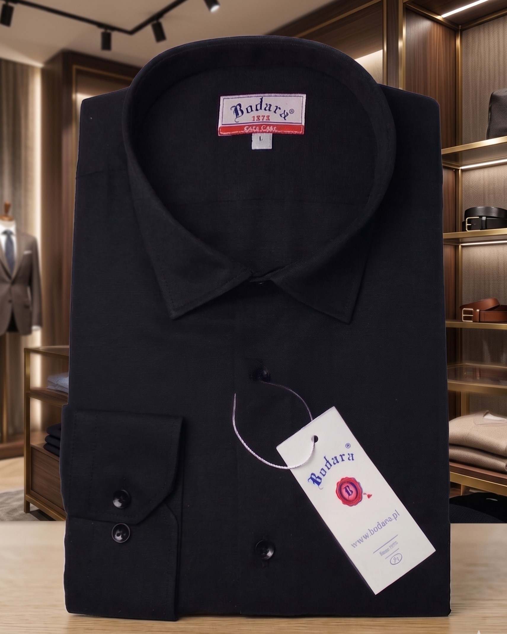 Wybierając ten model, wspierasz polskie marki odzieżowe. Od 1975 roku w Rydułtowach projektujemy ubrania, które łączą pasję do krawiectwa z nowoczesnymi technologiami. Ta czarna koszula to inwestycja w Twój wizerunek i codzienną wygodę. Poczuj jakość, która nie wymaga wysiłku i ciesz się stylem, który przyciąga spojrzenia.