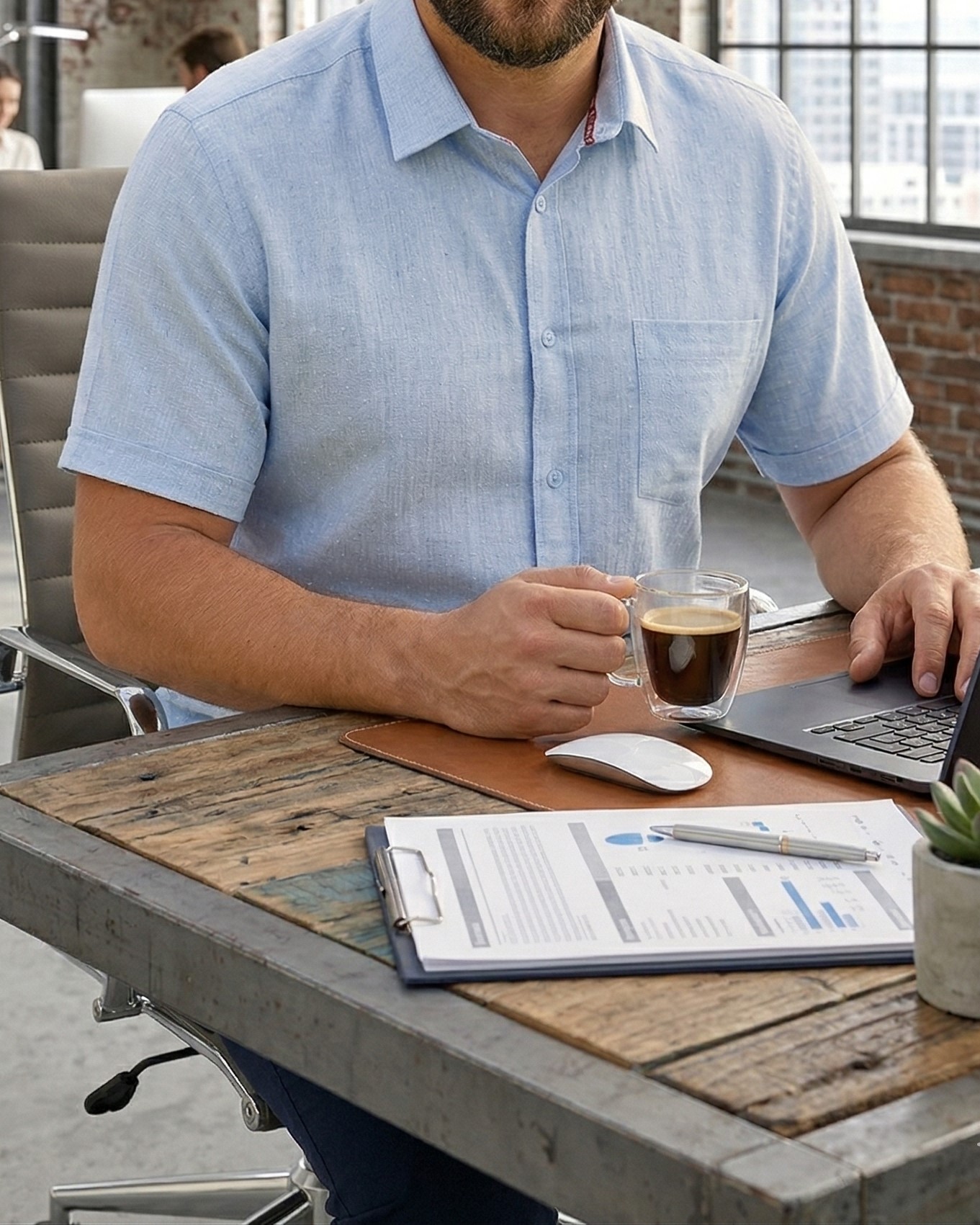 Prezentujemy model, który redefiniuje pojęcie wizytowej koszuli męskiej na sezon letni. To połączenie klasycznego krawiectwa Bodara z nowoczesnym składem materiałowym, zaprojektowane tak, aby sprostać wymaganiom uroczystości takich jak na komunia lub wesele.